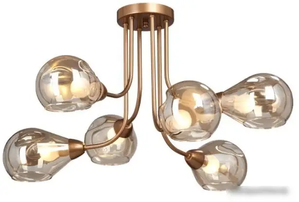 люстра средней высоты, плафон янтарный (стекло), каркас медный