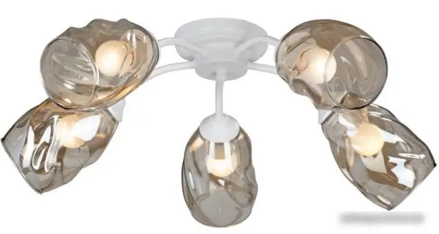 люстра средней высоты, плафон прозрачный/янтарный (стекло), каркас белый