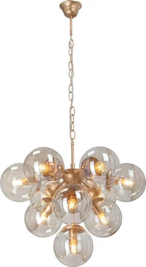 - Стильный дизайн с прозрачными плафонами и золотистым каркасом добавляет современный шарм интерьеру.