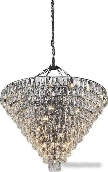 подвесная люстра, плафон прозрачный (хрусталь), каркас черный