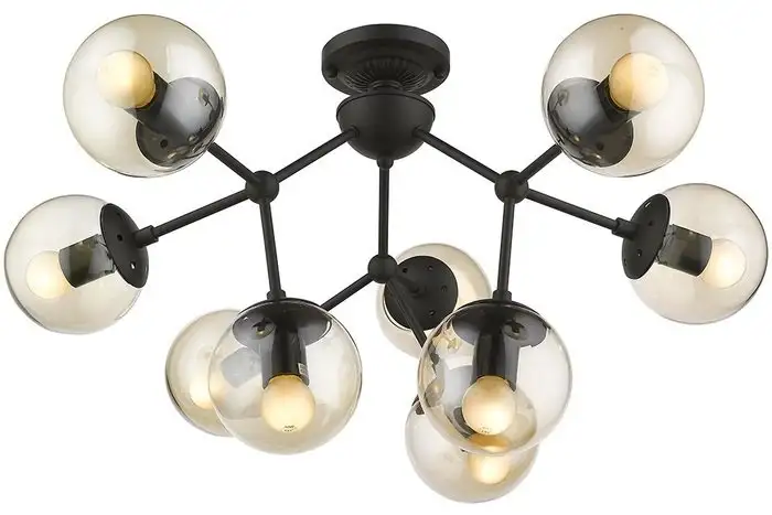 люстра средней высоты, плафон янтарный (стекло), каркас черный