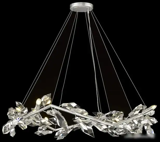 подвесная люстра, плафон прозрачный (хрусталь), каркас серебристый