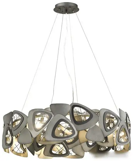 подвесная люстра, плафон серый/черный (металл/хрусталь), каркас серый/черный