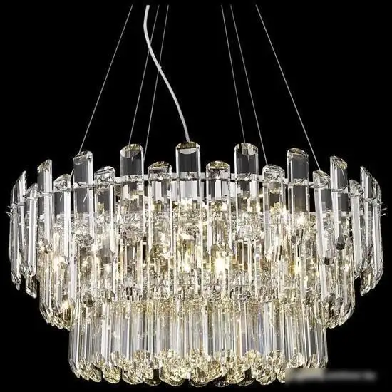 подвесная люстра, плафон прозрачный (хрусталь), каркас никель