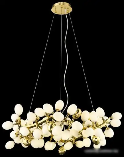 Подвесная люстра Wertmark Olivia WE232.10.303 создает яркое и равномерное освещение в комнате. Она оснащена 84 лампами по 20 Вт, которые дают мощный и приятный свет. Люстра имеет белые плафоны из стекла, что придает ей современный и стильный вид, а каркас выполнен из прочного металла золотистого цвета. Благодаря большой ширине 100 см и высоте 300 см, она отлично подходит для просторных помещений. Эта модель не регулируется по яркости или цвету свечения, поэтому освещение остается стабильным. Она не имеет дистанционного управления или функций изменения цвета, что делает её простой в использовании. Установка происходит на потолок, монтаж достаточно надежный и удобный. Эта люстра отлично подходит для тех, кто ищет современное и яркое решение для обеденной или гостиной зоны.