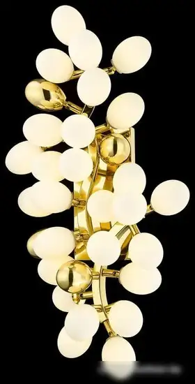 Бра Wertmark Olivia WE232.23.301 — современное освещение с 23 галогенными лампами мощностью 20 Вт каждая, создающее яркое и равномерное освещение. Его белые плафоны из стекла и золотистый металлический каркас отлично сочетаются и добавляют стилю любой комнаты. Бра не оснащено дистанционным управлением и регулировками яркости или цвета, что делает использование простым и понятным. Удобно закрепляется на стене и имеет ширину 36 см и высоту 66 см, что подходит для различных помещений. Цоколь G4 легко заменяет лампочки при необходимости. Это освещение подойдет для тех, кто ценит современный дизайн и надежность. Благодаря отсутствию влагозащищенности, его лучше использовать в сухих комнатах. Простая конструкция и высокое качество материалов обеспечивают долгий срок службы.
