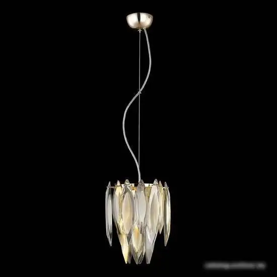 люстра средней высоты, плафон белый/золотистый/серый (хрусталь), каркас золотистый