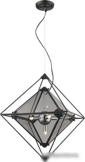 подвесная люстра, плафон серый (стекло/пластик), каркас черный