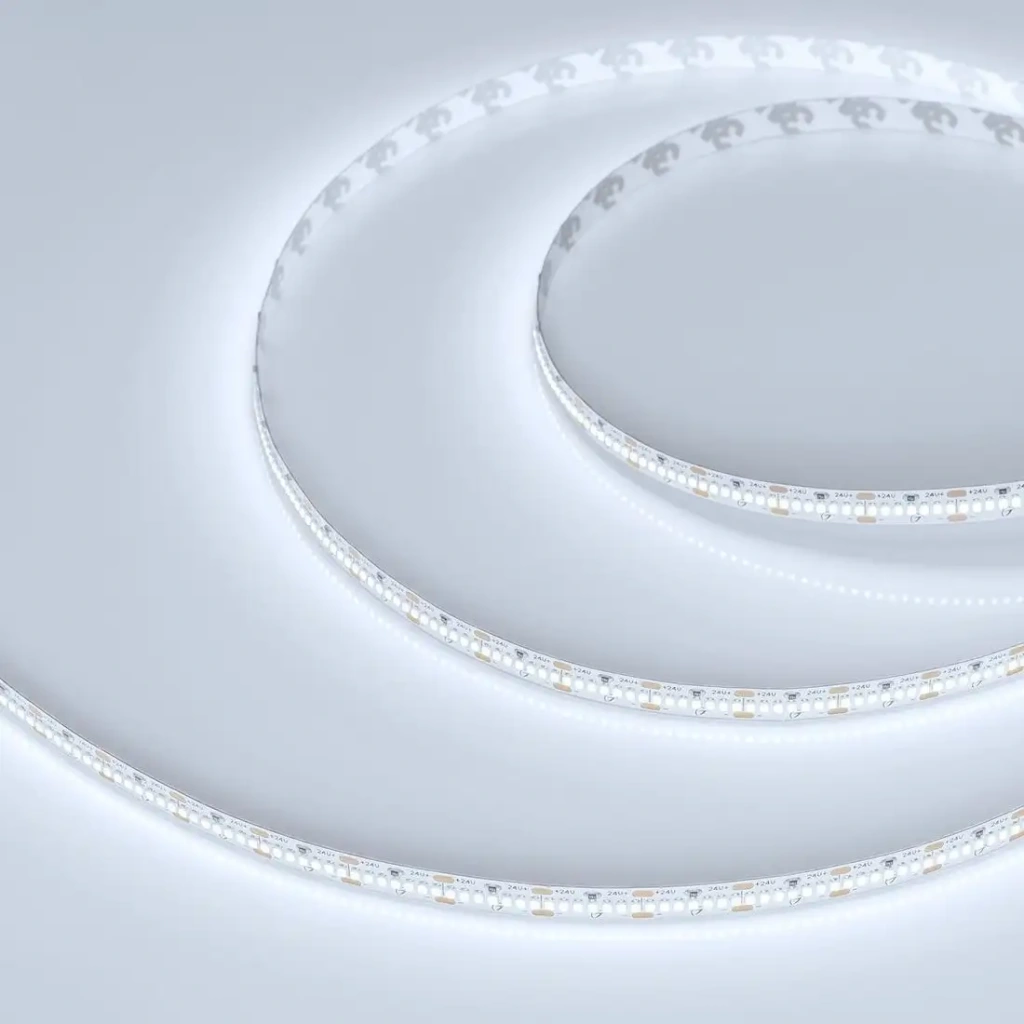Эта светодиодная лента Arlight отлично подходит для создания уютной атмосферы в доме или офисе. Она длиной 5 метров и имеет клейкую основу, что облегчает монтаж на любые поверхности. Лента работает при напряжении 24 В и потребляет всего 6 Вт на метр, что обеспечивает энергоэффективность. Светодиоды модели 2216 создают мягкий холодный белый свет с температурой 6000K, создавая приятное освещение. Благодаря высокому индексу цветопередачи CRI 90, цвета выглядят яркими и натуральными. Ширина ленты всего 8 мм помогает установить её в узких местах, а угол рассеивания 120° обеспечивает равномерное освещение. Степень защиты IP20 защищает от пыли, но требует аккуратного использования во влажных помещениях. Этот светодиодный светильник отлично подойдет для подсветки полок, шкафов и декоративных элементов. Он легко подключается и обеспечивает долгий срок службы.