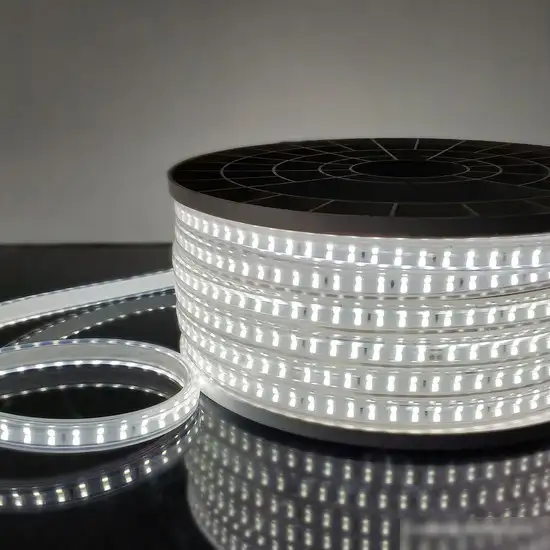 Светодиодная лента Elektrostandard 220V 18W 180Led 2835 IP65 обеспечивает яркое освещение с холодным белым светом и защищена от влаги. Ее длина составляет 50 метров, что удобно для крупных проектов освещения. Ширина ленты равна 17 мм, а высота — 7 мм, что позволяет легко установить ее в разные места. Лента использует светодиоды типа 2835, которые создают световой поток 1240 лм/м и имеют угол рассеивания 120°, равномерно освещая пространство. Количество диодов составляет 180 штук на метр, а минимальный отрезок для резки — 1 метр. Работа ленты осуществляется при напряжении 220 В, а степень защиты IP65 гарантирует ее безопасность в условиях влаги. В комплект входят крепежные элементы, заглушка и сетевой шнур, что облегчает монтаж и подключение. Эта светодиодная лента идеально подходит для внутреннего и наружного освещения, украшения интерьеров и фасадов зданий.