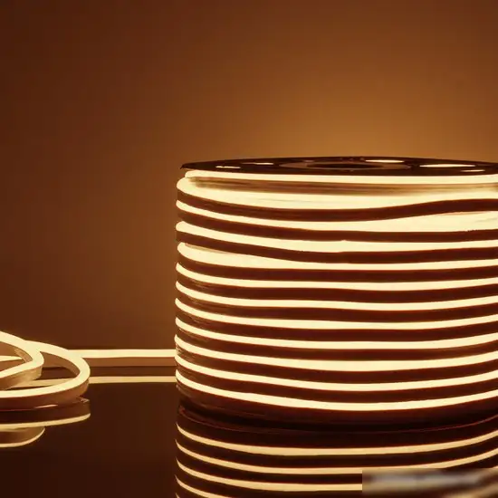 Гибкий неон Elektrostandard LS001 обеспечивает яркое тепло-белое освещение и легко устанавливается благодаря клеящей основе. Он работает от стандартного 230 В и потребляет всего 9,6 Вт на метр, что делает его энергоэффективным. Лента выполнена из герметичного материала с защитой IP67, поэтому подходит для использования на улице и под открытым небом. Благодаря низкой ширине и высоте её легко разместить в любом месте, а светодиоды 2835 обеспечивают яркий световой поток — 540 лм на метр. Угол рассеивания 120° равномерно распределяет свет. Можно резать ленту каждые 1 мм, что помогает точно подогнать длину. В комплект входят крепеж, заглушка и сетевой шнур для быстрой установки. Эта лента подходит для оформления фасадов, садовых дорожек, витрин и уличных пространств.