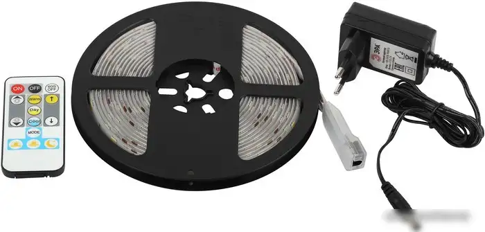 Этот готовый комплект светодиодной ленты ЭРА 5025kit подходит для создания уютной подсветки в доме. Лента выполнена из светодиодов 5025 с яркостью 300 люмен на метр и теплым белым свечением 3000K, создающим приятную атмосферу. Работает она на напряжении 12 В и имеет мощность 4,5 Вт на метр, что позволяет использовать ее в различных помещениях. Длина ленты составляет 5 метров, а благодаря клеящей основе легко прикрепляется к любой поверхности. Степень защиты IP20 подходит для внутренних помещений, она не устойчива к влаге, что важно учитывать при монтаже. Лента обладает широким углом рассеивания 120°, обеспечивая равномерное освещение. Минимальный отрезок для резки — 1000 мм, что позволяет адаптировать длину к любым нуждам. В комплект входит блок питания и пульт дистанционного управления для удобства выбора режима освещения.
