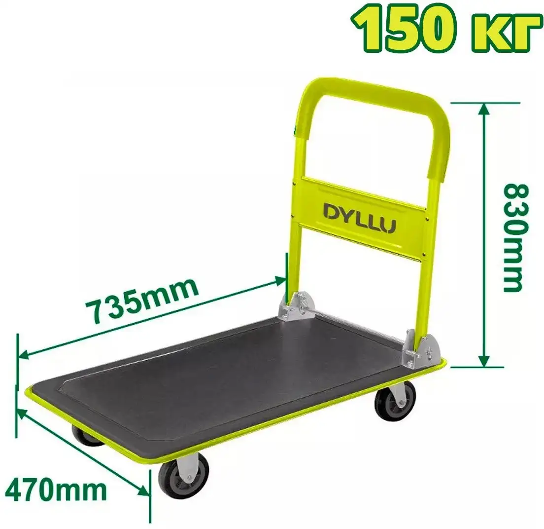 Тележка-платформа Dyllu DTWB1315 обладает прочной конструкцией и грузоподъемностью 150 кг, что позволяет легко перевозить тяжелые предметы. Ее длина составляет 735 мм, ширина — 470 мм, а высота — 830 мм (220 мм в сложенном виде), что делает ее удобной в использовании и хранении. Колеса диаметром 100 мм обеспечивают стабильность и простой ход по разным поверхностям. Вес тележки всего 7 кг, что облегчает ее перенос и транспортировку. Она идеально подходит для работы в гараже, складе или на стройке. Компактные размеры и легкий вес помогают быстро сложить и убрать тележку при необходимости.