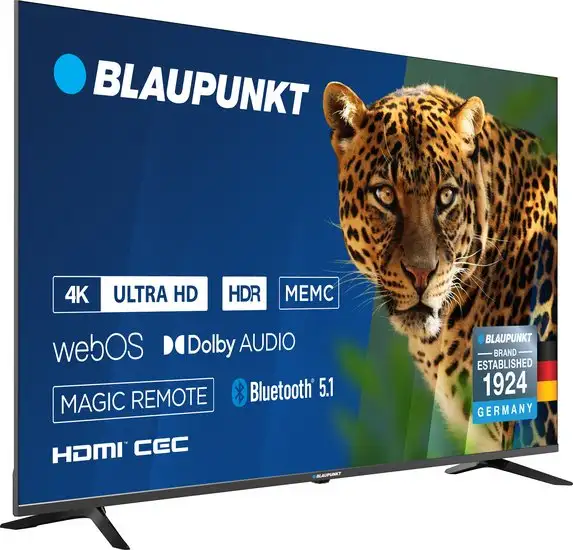 Телевизор Blaupunkt 65UW5000T оснащён большим 65-дюймовым экраном с разрешением 4K UHD, который отлично подходит для качественного просмотра фильмов и программ. Он работает на платформе LG webOS 22, что позволяет легко управлять приложениями и пользоваться смарт-функциями через голосовой поиск с пультом с микрофоном. Благодаря технологии Direct LED изображение яркое и контрастное, а безрамочный дизайн делает его современным и стильным на любой стене. Телевизор поддерживает HDMI 2.1 и Bluetooth 5.1, что удобно при подключении другой техники и беспроводных устройств. Встроенные интерфейсы Ethernet, USB и оптический выход обеспечивают гибкость в подключении. Высокая частота обновления 60 Гц и умение управлять голосом делают просмотр комфортным и удобным. Корпус выполнен в чёрном цвете, его размеры позволяют закрепить устройство на стене с VESA-креплением. Устройство весит около 20 кг, что говорит о его качественной сборке и долговечности.