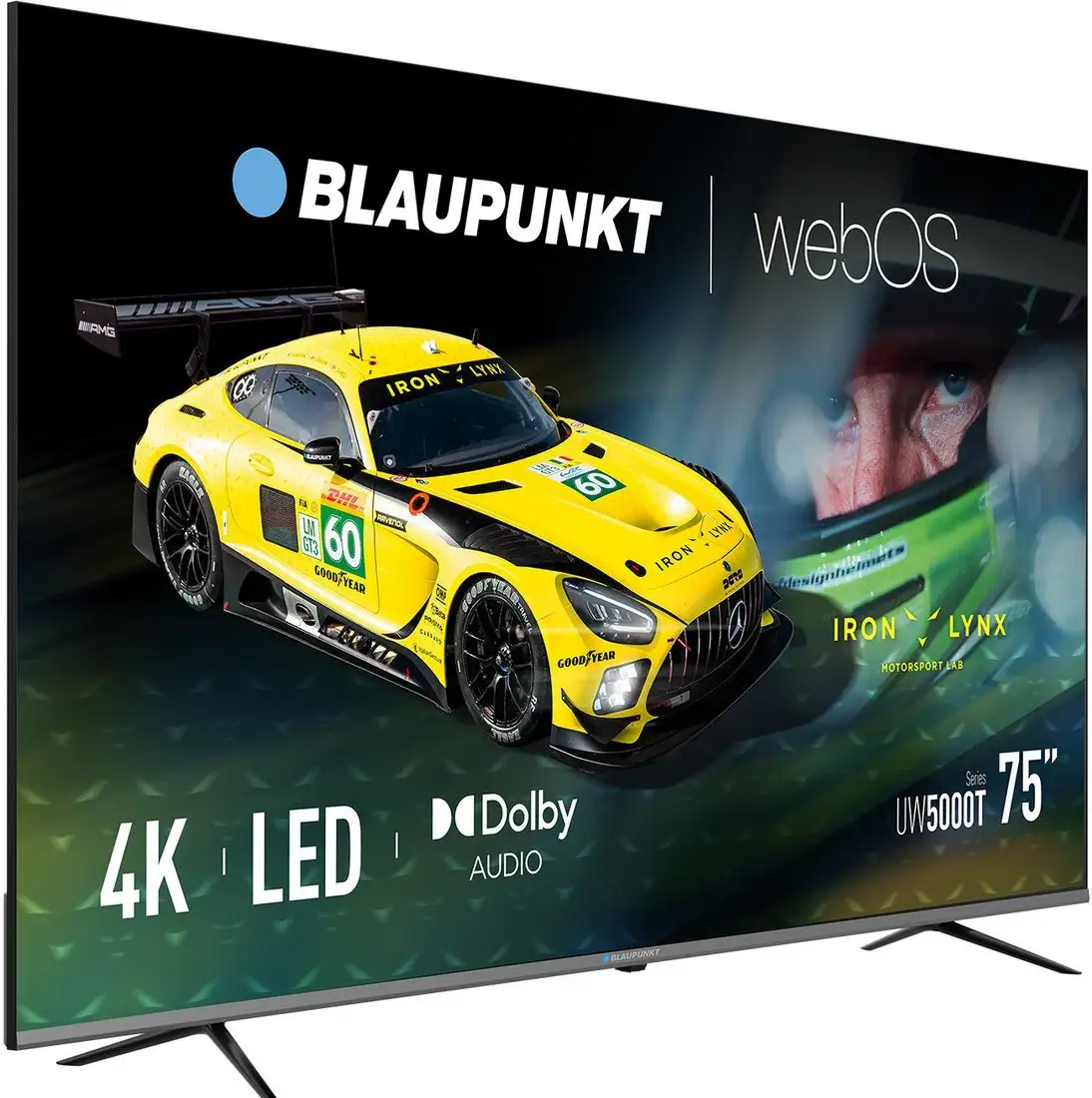 Телевизор Blaupunkt 75UW5000T имеет большой 75-дюймовый экран с разрешением 4K UHD, что обеспечивает яркое и четкое изображение. Он подключается к интернету через Wi-Fi и Bluetooth, позволяя использовать разные стриминговые сервисы и подключать внешние устройства. Управлять телевизором можно голосом с помощью встроенного микрофона в пульте, что делает работу более удобной. Панель сделана из прямой LED-подсветки, которая помогает выводить яркое и насыщенное изображение. Телевизор поддерживает 3 HDMI-выхода, один USB и оптический аудиовыход для подключения внешней акустики или устройств. Он оснащен двумя тюнерами для приема различных цифровых каналов и совместим с большинством стандартных вещаний. Благодаря тонкому безрамочному дизайну, изображение кажется более погруженным. Устройство легко крепится на стену по стандарту VESA 500x300 и имеет вес около 29 кг. В комплекте есть умный пульт с микрофоном, который позволяет управлять телевизором и искать контент голосом.
