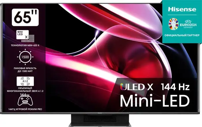 65" 3840x2160 (4K UHD), экстерьерный, матрица IPS, частота матрицы 144 Гц, Smart TV (Vidaa), HDR10, HDR10+, Dolby Vision, Dolby Vision IQ, HLG, DTS:X, Dolby Atmos, AirPlay, Wi-Fi, смарт пульт