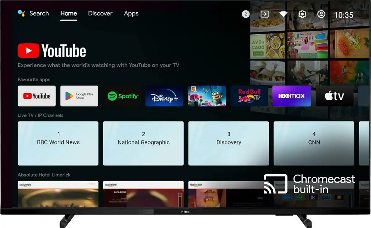 Телевизор Philips 55HFL4518U/12 оснащен 55-дюймовым экраном с разрешением 4K UHD, что делает изображение ярким и чётким. Он работает на платформе Android TV 11, что позволяет легко использовать популярные приложения и стриминг-сервисы. Благодаря поддержке Wi-Fi 5 и Bluetooth 5.0, телевизор быстро подключается к другим устройствам и обеспечивает стабильную передачу данных. Устройство имеет три входа HDMI 2.0 и оптический выход S/PDIF, что упрощает подключение внешних устройств и акустики. Телевизор поддерживает объемное звучание через форматы DTS:HD и Dolby Atmos, а его мощность звука — 20 Вт. Он оснащен удобной подставкой по краям и имеет крепление VESA 100x200 для настенного монтажа. В управление входит голосовой поиск, что повышает комфорт использования. Также устройство поддерживает возможность трансляции контента с помощью Chromecast Built-in и совместимо с AirPlay. Телевизор не имеет встроенного 3D, Smart TV работает быстро и стабильно, что делает его хорошим выбором для домашнего просмотра.
