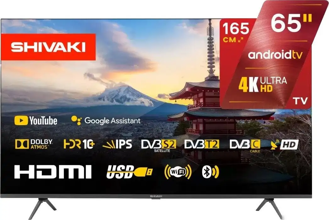 Телевизор Shivaki S65LU8500 — это хороший выбор для тех, кто хочет получить качественное изображение и удобство использования по доступной цене. Он оснащён 65-дюймовым IPS-экраном с разрешением 4K UHD, который обеспечивает яркое и чёткое изображение. Технология Direct LED помогает равномерно подсвечивать экран, а HDR10+ делает цвета более насыщенными и реалистичными. Телевизор работает на платформе Android TV, что позволяет быстро запускать любимые приложения и управлять ими с помощью голосового управления и пульта с микрофоном. Благодаря встроенному Wi-Fi и Bluetooth можно легко подключать различные гаджеты и наушники. Имеются все необходимые разъёмы, в том числе HDMI и оптический выход, чтобы подключать внешние устройства. Корпус выполнен в черном цвете с серебристой подставкой, а устройство занимает мало места и легко крепится на стену. Он подходит для просмотра фильмов, сериалов или игр благодаря современным технологиям и простому управлению. Устройство весит 18,1 кг и имеет VESA-крепление для монтажа.