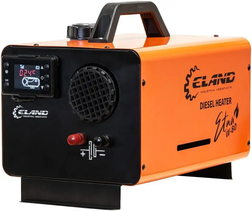 Дизельная тепловая пушка ELAND Etna W-80 подходит для быстрого обогрева больших помещений. Она имеет мощность 8 кВт и производит до 350 м³ воздуха в час. Устройство работает на дизельном топливе с расходом 0,6 л/час и оснащено 6 уровней мощности для точной регулировки температуры. Бака емкостью 5 литров хватает, чтобы долго поддерживать тепло. Тепловая пушка включает автоматический термостат и защиту от перегрева, обеспечивая безопасность в работе. Она легко управляется с помощью входных напряжений 230 В, а также 12 В и 24 В. Конструкция надежная и защищена от пыли и влаги по стандарту IP21. Вес устройства составляет всего 10,2 кг, что облегчает переноску и монтаж. Благодаря продуманному дизайну, устройство быстро нагревает помещение и долго сохраняет тепло. Подходит для использования в различных условиях и обеспечивает комфортное тепло.