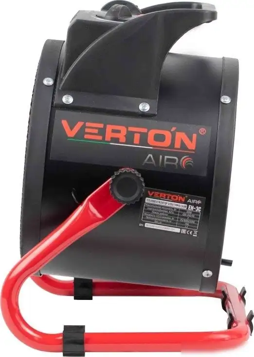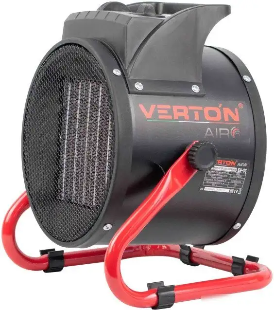 Тепловентилятор Verton Air EH-3C произведен в Китае и предназначен для быстрого обогрева помещений. У него есть металлический керамический нагревательный элемент мощностью 3000 Вт и механическое управление с регулятором уровня мощности — 1500 или 3000 Вт. Тепловентилятор работает без дисплея и дополнительных функций очистки воздуха или увлажнения. В отличие от умных устройств, он управляется механически, а его цвет — красный или черный. В комплекте идут ножки, а колес нет, поэтому устройство легко переносить с места на место. Благодаря небольшому весу — всего 2.9 кг — его удобно перемещать и использовать в разных комнатах.