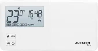 Терморегулятор Auraton Pavo предназначен для управления системами комнатного отопления и легко устанавливается на стену. Он имеет простое управление кнопками и графический монохромный экран с подсветкой, который показывает текущую температуру. Устройство работает в диапазоне от 5 до 30 градусов Цельсия и позволяет создавать до 3 программ с 8 интервалами в сутки, чтобы поддерживать тепло в доме. Есть возможность ручного режима и защиты от замерзания, чтобы избежать промерзания помещения. Встроенный датчик температуры воздуха помогает точнее регулировать отопление. Максимальный ток нагрузки составляет 8 ампер, а корпус имеет класс защиты IP20. Также доступна функция коррекции показаний датчика, которая помогает повысить точность измерений.