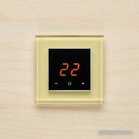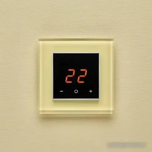 Терморегулятор DeLUMO Orto классический бежевого цвета предназначен для управления системами отопления и теплым полом. Он имеет сенсорное управление и графический монохромный экран, что делает его использование удобным и простым. Устройство работает в диапазоне температур 5–55 °C и оснащено датчиком температуры пола, что помогает поддерживать комфортную температуру в помещении. Максимальная нагрузка составляет 3500 Вт при токе до 16 А, что подходит для большинства домашних систем отопления. Монтаж осуществляется скрытым способом внутри стен, а корпус защищен от попадания пыли и влаги по классу IP20. Терморегулятор не управляется через Wi-Fi, но легко интегрируется в систему благодаря своему функционалу.