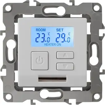 непрограммируемый, кнопочное управление, экран, датчик температуры воздуха, монтаж скрытый (внутренний), корпус IP20