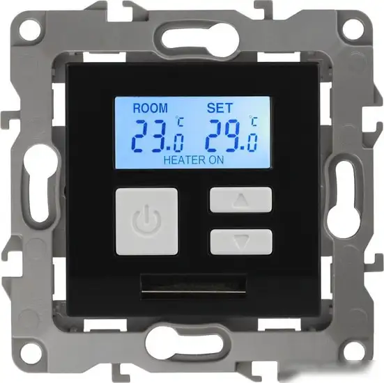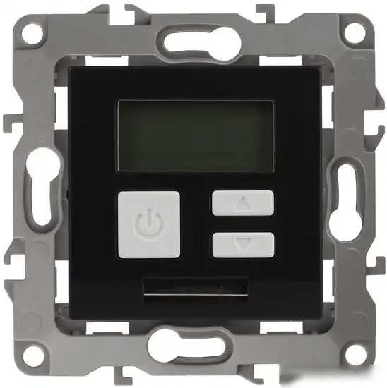 непрограммируемый, кнопочное управление, экран, датчик температуры воздуха, монтаж скрытый (внутренний), корпус IP20