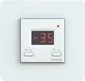 Терморегулятор Welrok KT предназначен для систем антиобледенения кровли, водостоков и дорожек. Он управляется кнопкой и оснащён экраном для удобного настройки. Устройство работает в диапазоне температур от 0 до 10 градусов, а также может запускаться при более низких температурах благодаря встроенному датчику. Корпус выполнен в белом цвете и защищён от влаги по стандарту IP20. В комплект входит датчик температуры длиной 3 метра, что позволяет точно контролировать нужные участки. Терморегулятор легко монтируется внутри помещения и имеет функцию блокировки от детей для безопасности. Он не управляется через Wi-Fi и не имеет программного обеспечения, что делает его простым в использовании и обслуживании.