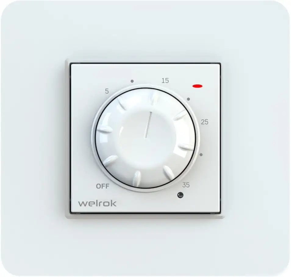 Терморегулятор Welrok rol предназначен для управления системами комнатного отопления. Он не требует программирования и работает механически, что делает его простым в использовании. Устройство оснащено датчиком температуры воздуха, который автоматически поддерживает заданный уровень тепла. Терморегулятор подключается внутри стены, что позволяет сохранить эстетичный внешний вид. Диапазон регулировки температуры составляет от 0 до 35 °C, а точность — 1 °C. Максимальный ток нагрузки — 16 А, что подходит для большинства отопительных приборов. Корпус выполнен из белого пластика и защищен классом IP20. В комплект входят сам регулятор, декоративная рамка, инструкция, гарантия и упаковка. Это устройство обеспечивает надежное и простое управление отоплением без дополнительных настроек.