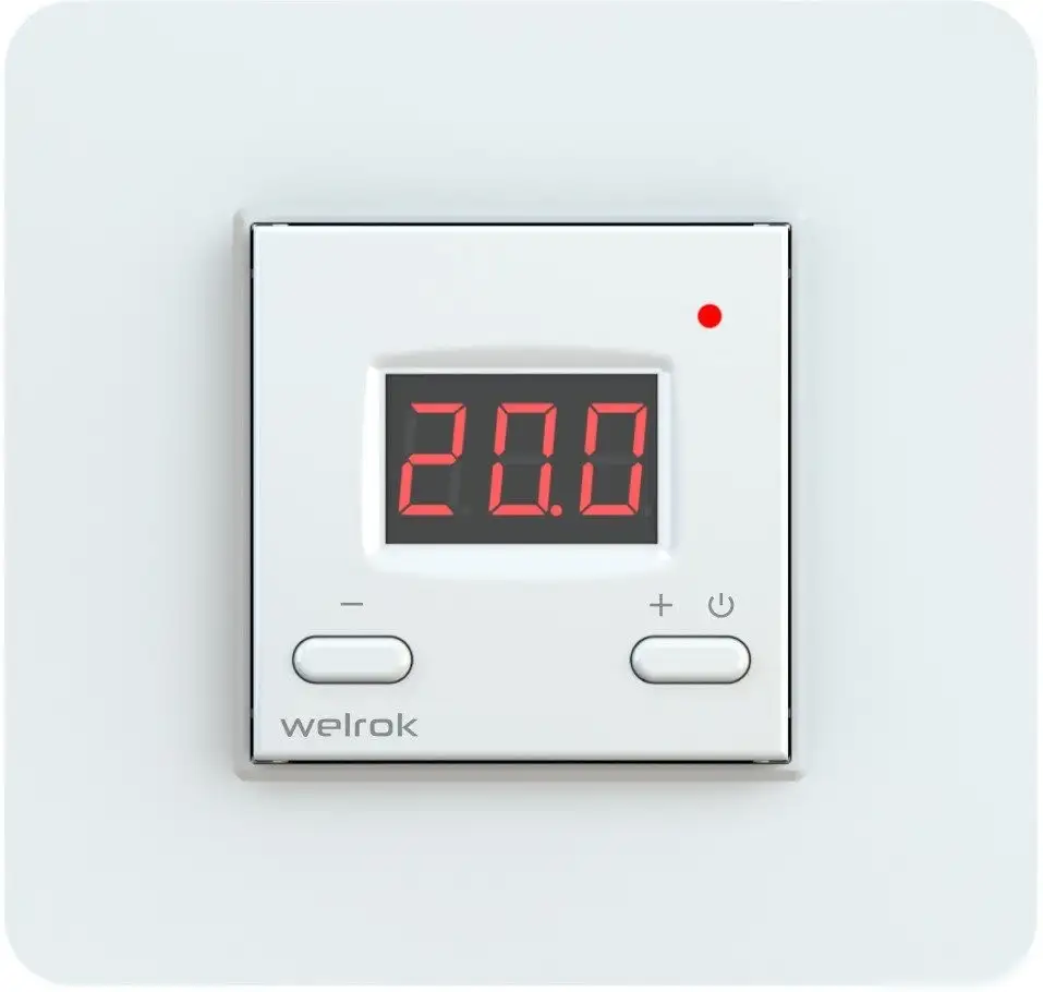 Терморегулятор Welrok VT предназначен для управления системами комнатного отопления. Он прост в использовании с кнопочным управлением и оснащён ярким экраном, который позволяет легко регулировать температуру. Устройство работает в диапазоне от 0 до 35 °C и имеет функцию блокировки от детей для безопасности. Корпус выполнен в белом цвете и имеет класс защиты IP20, что означает защиту от пыли и случайных повреждений. Терморегулятор подключается к системе «Умный дом» через Wi-Fi, хотя управление происходит с помощью кнопок, а не через интернет. В комплекте поставляется всё необходимое для установки и использования.