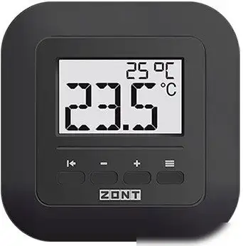 Терморегулятор Zont МЛ-332.black управляет системами комнатного отопления, позволяя точно контролировать температуру. Он не программируемый и управляется с помощью кнопок, что позволяет легко настроить нужную температуру. На устройстве есть графический монохромный экран, который показывает текущие параметры работы. Терморегулятор использует встроенный датчик температуры воздуха для поддержания комфортной обстановки. Диапазон регулировки температуры составляет от 5 до 50 °C, что подходит для различных условий. Гистерезис в 0.5 °C помогает избегать частых переключений отопления и экономит энергию. Корпус выполнен в черном цвете и имеет класс защиты IP20, что подходит для внутри помещений. Он устанавливается накладным способом на стену, что обеспечивает простую монтаж. Этот регулятор — надежное решение для комфортной и энергоэффективной работы системы отопления.