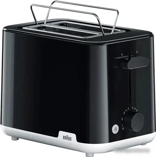 Этот тостер Braun HT1010BK — удобный прибор для быстрой и равномерной поджарки хлеба. У него есть два отделения, что позволяет одновременно делать два тоста. Мощность 900 Вт обеспечивает хорошую работу, а светодиодная индикация подскажет, когда тосты готовы. Устройство управляется механическим регулятором и имеет восемь степеней обжаривания, чтобы легко подобрать нужную корочку. Также есть функция размораживания и подогрева, что удобно для быстрого приготовления завтрака. В комплект входит съемный поддон для удобной очистки, а решетка для подогрева позволяет подогреть булочки или круассаны. Экстра-подъем помогает легко вынуть готовые тосты, а дизайн из черного пластика отлично впишется в любую кухню.