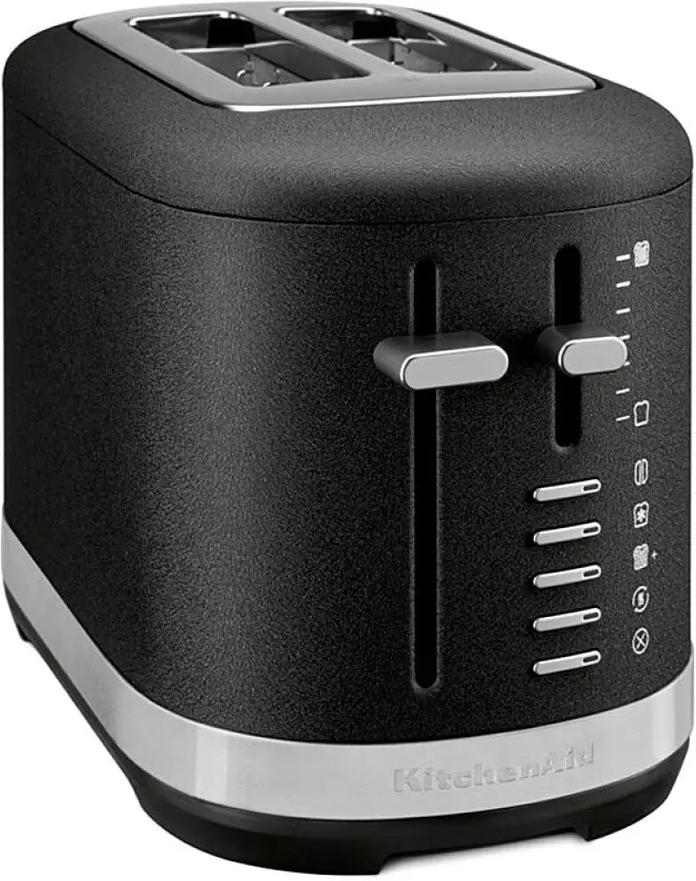 Тостер KitchenAid 5KMT2109EBK позволяет обжаривать два кусочка хлеба одновременно благодаря двум отделениям. Он оснащен электронным управлением и светодиодной индикацией, что делает настройку удобной и понятной. Устройство имеет семь уровней обжаривания, что дает возможность выбрать идеальную степень корочки. Тостер подходит для размораживания и подогрева хлеба, а съемный поддон облегчает очистку. Решетка для подогрева помогает сохранить свежесть продуктов. Также есть функция экстра-подъема, которая облегчает извлечение горячих тостов. Корпус выполнен из металла в стильном черном цвете, что отлично вписывается в современный интерьер. Тостер обладает компактными размерами и легким весом — всего 1.9 кг. Благодаря этим характеристикам, устройство быстро и качественно готовит тосты, экономит место и долго служит.