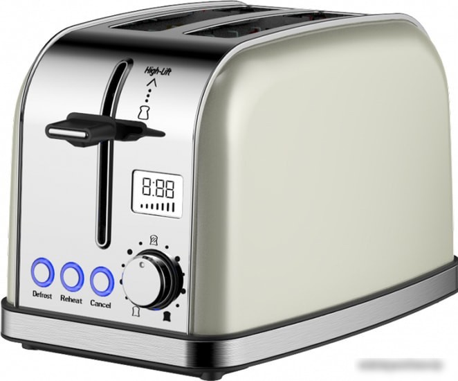 950 Вт, количество тостов: 2, корпус: металл, 7 степеней обжаривания, цвет бежевый/нержавеющая сталь