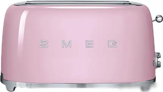 Тостер Smeg TSF02PKEU выполнен в розовом цвете и имеет мощность 1500 Вт. Он позволяет одновременно поджарить до четырёх тостов, используя два отделения. Управление осуществляется электронным способом, а светодиодная индикация показывает текущий режим работы. Тостер предлагает шесть степеней обжаривания, что позволяет выбрать идеальную степень поджаривания хлеба. Он умеет размораживать продукты, подогревать тосты и автоматически центрировать их для равномерного поджаривания. Вес устройства — чуть более 3,3 кг, а его размеры позволяют легко разместить на кухне. Съемный поддон облегчает очистку, а автоматическое поднятие тостов помогает легко их извлекать. Благодаря качественной сборке из металла, тостер прослужит долго и удобно в использовании.