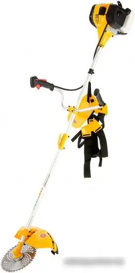 бензиновый, оснастка: леска+металлический диск, ширина скашивания 25.5-42 см, вес 7.4 кг