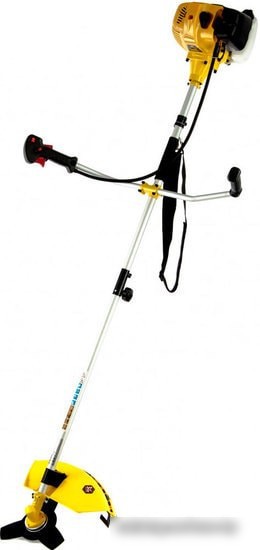 Триммер Denzel DT-52S – это бензиновый инструмент, который отлично подойдет для ухода за газоном и кустарниками. Он оснащен двухтактным двигателем объемом 52 см³, что обеспечивает хорошую мощность для работы. Рабочая ширина скашивания регулируется от 25,5 до 42 см, а режущая система включает леску диаметром 2,4 мм и металлический нож. Триммер имеет разъемную штангу, которая облегчает транспортировку и хранение, а ремень помогает равномерно распределить нагрузку. Вес устройства составляет 7,6 кг, что делает его достаточно мобильным для своего класса. Корпус выполнен в ярком желтом и черном цвете, что увеличивает видимость и безопасность при использовании.