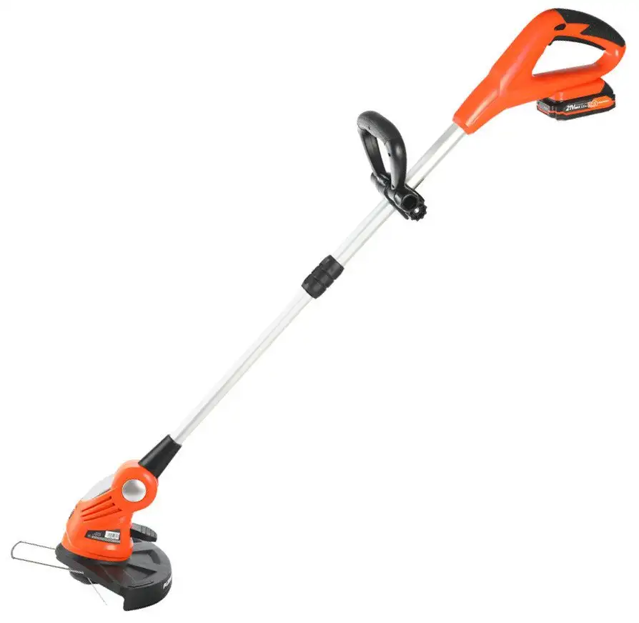 | Комплектация | - Триммер в сборе, - рукоятка, - защитный кожух, - скоба защиты растений, - фиксатор рукоятки, - катушка с леской, - инструкция по эксплуатации, - аккумулятор, - зарядное устройство для аккумулятора. |
