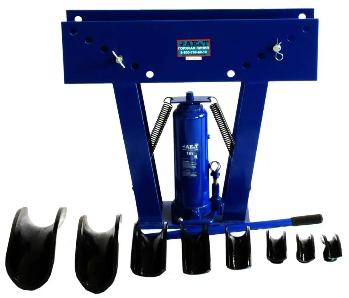 Трубогиб гидравлический AE&T T60016 — это инструмент с усилием до 16 тонн, который позволяет гнуть трубы диаметром до 88,5 мм и толщиной стенки до 4,75 мм. Он легко меняет размеры трубы с помощью набора изгибов и может достигать угла гиба до 90°. Устройство удобно в использовании благодаря встроенному насосу и широкому основанию для установки на любой стол или верстак.