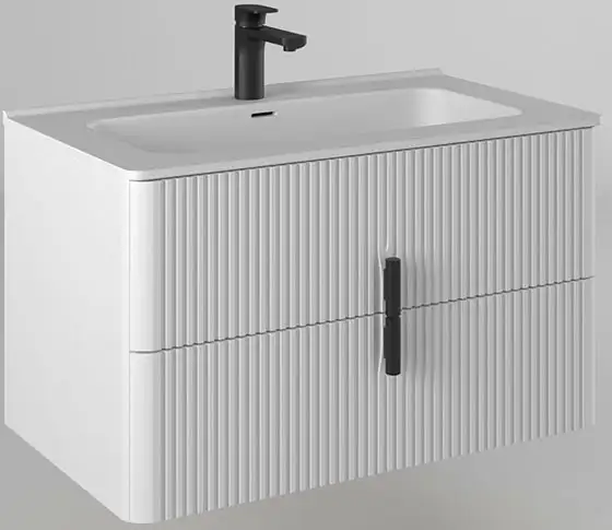 Тумба с умывальником Briz Бьянко 100 106 03-18100-16 00 — это удобное решение для ванной комнаты. Она сделана из МДФ и предназначена для подвесного монтажа, что облегчает уборку под ней. Тумба шириной 100 см идеально подходит под умывальник такой же ширины, а её цвет — белый, что впишется в любой интерьер. В комплект входит умывальник, что делает покупку удобной и быстрой. Размеры тумбы — глубина 46,5 см и высота 46 см, её легко установить и использовать. Также в тумбе есть встроенные выдвижные ящики с ручками, что позволяет удобно хранить разные вещи.