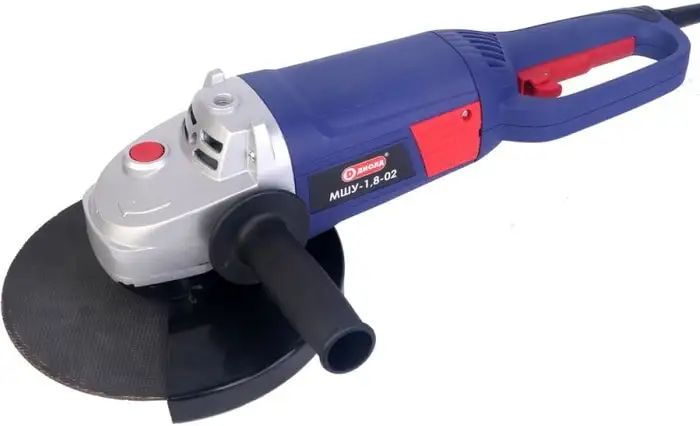 Угловая шлифмашина ДИОЛД МШУ-1.8-02 подходит для обработки различных материалов. Она работает от сети и потребляет 1 800 Вт, обеспечивая высокую мощность. Диаметр диска 230 мм позволяет выполнять крупные работы быстро и эффективно. Вес прибора составляет 5,3 кг, что делает его удобным для работы. Бесщеточный двигатель отсутствует, но есть блокировка шпинделя для безопасной смены дисков. Машина не регулирует скорость оборотов, но оснащена боковой рукояткой для удобного руководства. Среди функций есть защита при заклинивании и возможность крепления дополнительной рукоятки. В комплект входит руководство, две щетки, специальный ключ и шестигранный ключ для обслуживания. Это устройство подходит для профессиональной и бытовой обработки поверхностей.