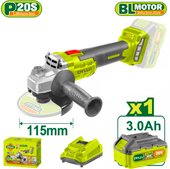 диаметр диска: 115 мм, 3000–9000 об/мин холостого хода, регулировка скорости оборотов, питание: аккумуляторный (20 В), аккумулятор в комплекте, 2.75 кг