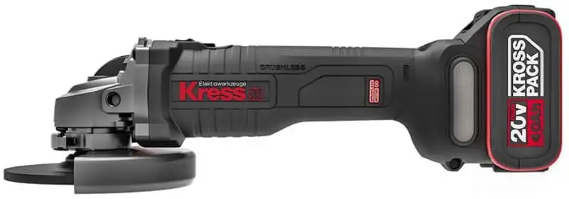 Угловая шлифмашина Kress KU801.9 — это легкий и мощный инструмент, который работает на аккумуляторе без проводов. Она подходит для шлифовки и обработки разных материалов. Машина имеет регулировку скорости вращения от 3 500 до 8 500 об/мин, что удобно для разных задач. В ней также есть блокировка шпинделя и боковая рукоятка для безопасной работы. Модель использует аккумулятор емкостью 20 В, и есть возможность регулировать скорость оборотов.
