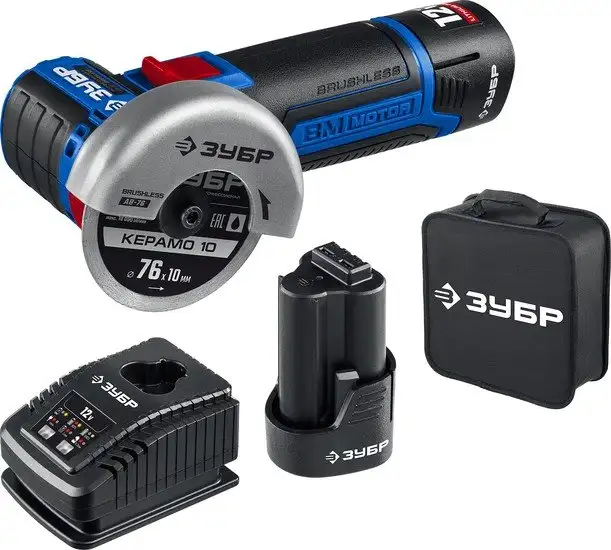 Угловая шлифмашина Зубр Профессионал AB-76-22 (с 2-мя АКБ, сумка)