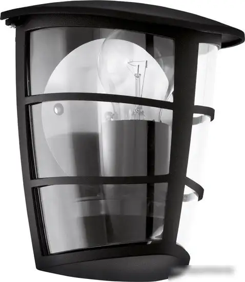 фонарь, 1×60 Вт, плафон черный/прозрачный, каркас черный