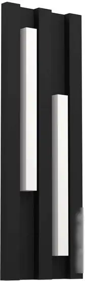 Уличный настенный светильник Eglo Fandina 900118 имеет современный дизайн с черным металлическим каркасом и белыми пластиковыми плафонами. Он оснащен двумя светодиодными лампами мощностью по 9 Вт и обеспечивает яркий свет с световым потоком 1000 люмен при цветовой температуре 3000 K, создавая теплую атмосферу на улице. Размеры изделия: длина 14,5 см, ширина 5,5 см и высота 41,5 см, весит он около 0,88 кг, что облегчает монтаж. Светильник предназначен для уличной установки и устойчив к погодным условиям. Его материалы — металл и пластик — обеспечивают долговечность и надежность. В комплект не входят лампочки, их необходимо покупать отдельно. Светильник легко монтировать на стену, он хорошо подойдет для освещения входа, дорожек или придомовой территории.