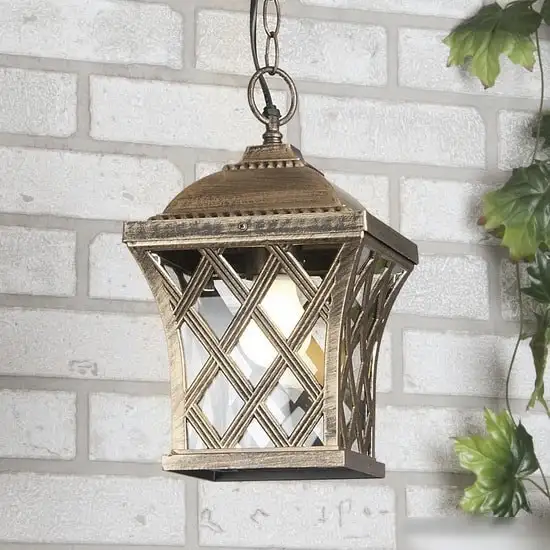 фонарь, 1×60 Вт, плафон золотистый/черный/прозрачный, каркас золотистый/черный