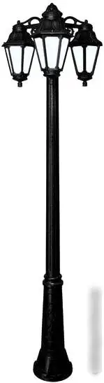 Фонарьный столб Fumagalli Anna E22.157.S30.WYF1RDN оснащён тремя светодиодными лампами по 60 Вт, которые обеспечивают яркость 800 люмен. Он выполнен в классическом стиле с белым каркасом и белыми плафонами из стекла, что легко впишется в любой дизайн участка или двора. Каркас сделан из прочного металла и пластика, а плафоны из стекла — их легко чистить. Столб имеет повышенную влагозащищённость с уровнем IP44, что помогает сохранять работу даже при плохих погодных условиях. Размеры устройства — 56 см в ширину и 213 см в высоту, его монтаж не вызывает проблем. В комплект входят лампочки, так что сразу можно установить фонарь и освеститься. Этот фонарь поможет освещать территорию красиво и надёжно, не требует частого обслуживания.