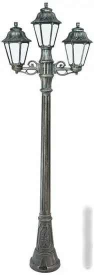 Фонарный столб Fumagalli Artu/Anna E22.158.S21.BYF1R имеет классический дизайн с бронзовым каркасом и плафонами. Он содержит три лампы мощностью 60 Вт, которые создают яркое освещение с световым потоком 800 лм и температурой 2700 K. Столб оснащён цоколем E27 и совместим с лампами накаливания или светодиодными. В комплект входят лампочки, что удобно сразу установить устройство. Благодаря высокой влагозащищенности IP44 устройство можно использовать на улице без опасений. Каркас выполнен из металла и пластика, а плафоны – из стекла, что обеспечивает долговечность и стильный внешний вид. Столб имеет размеры 24,5 см в ширину и 198 см в высоту, весит 12 кг. Он отлично подходит для освещения дорожек, садов или уличных зон отдыха. Надежность и привлекательный дизайн делают его удобным и практичным выбором для уличного освещения.